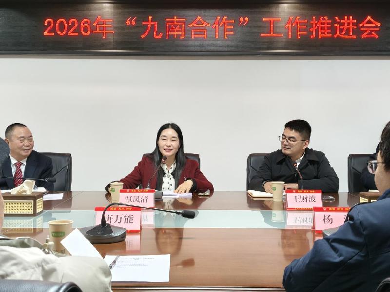 1月21日,九三学社宜宾市委会2026年“九南合作”工作推进会在社市委会机关会议室召开。九三学社宜宾市委会主委、市政协副主席覃凤清,中共南溪区委常委、统战部部长王财波出席会议并讲话。九三学社宜宾市委会专职副主委李文仲主持会议。