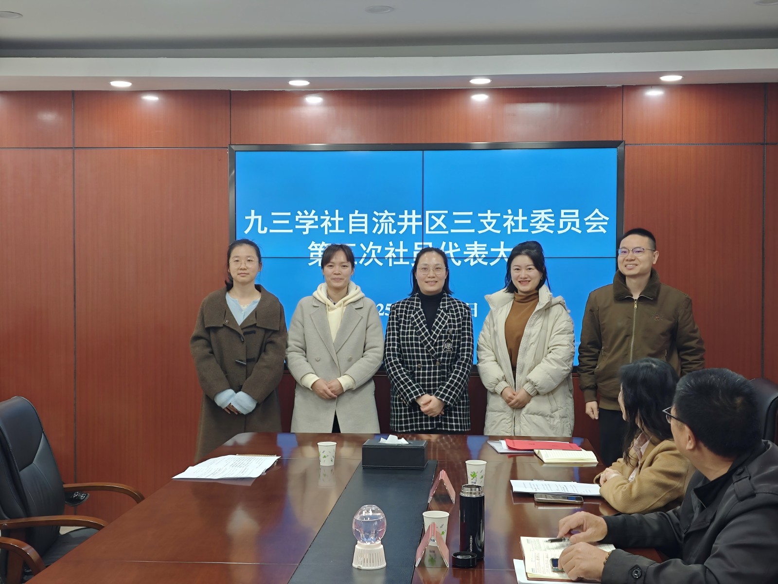 2025年12月下旬,九三学社自贡市自流井区一支社、二支社、三支社、四支社相继召开社员代表大会,顺利、平稳、高效地完成了换届选举工作。九三学社自贡市委会专职副主委沈涛、秘书长胡婷静到会指导。