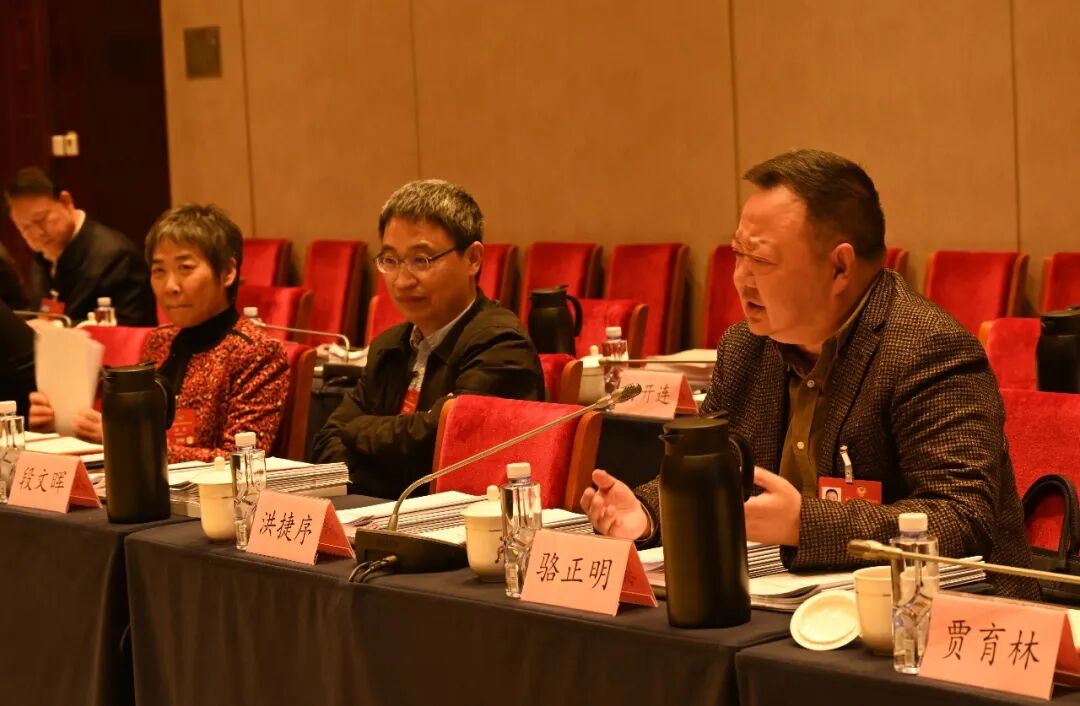 3月11日,四川省全国政协委员骆正明(右)在全国政协十四届四次会议小组会议上发言。
